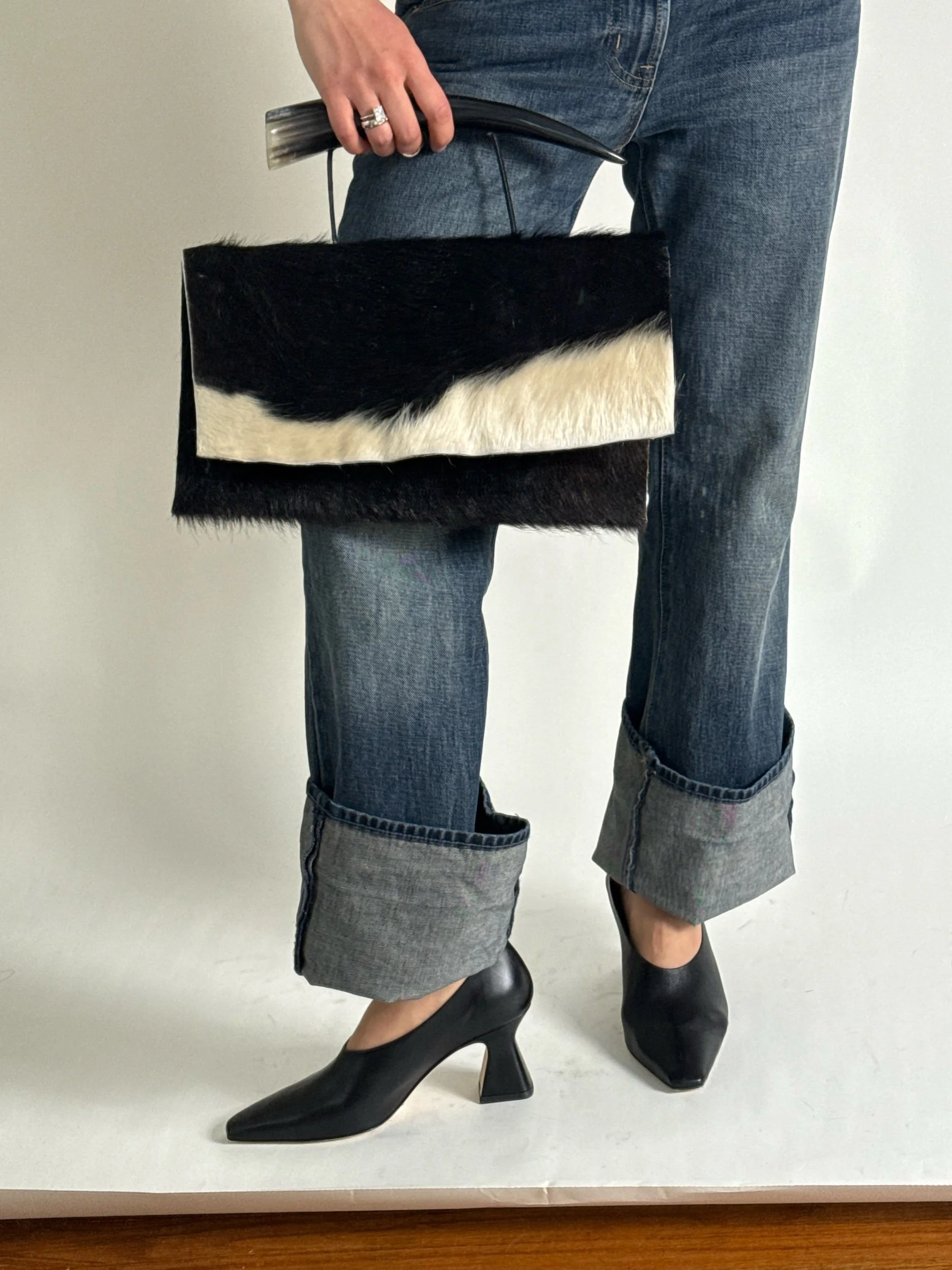 Reworked cowhide handbag